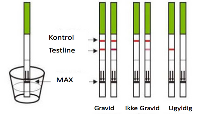 Positiv: Hvis to linjer vises både i kontrollområdet og testområdet, kan du anta at du er gravid.